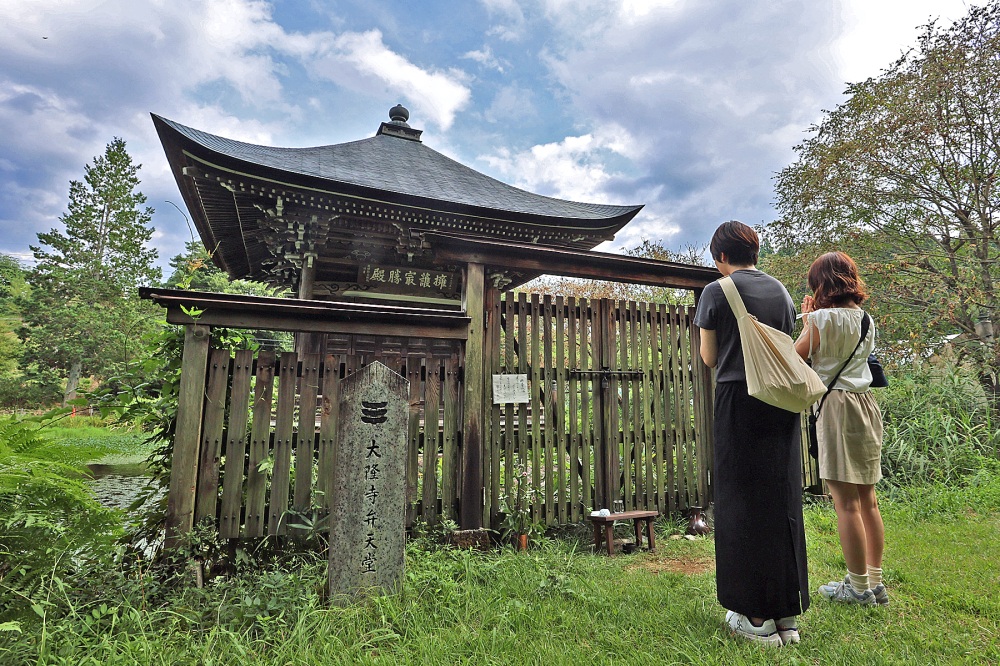 しかしながら、筆者がオススメする大隆寺最大の見どころは、境内をさらに下ると見えてくる弁天堂です。境内から弁天堂への階段は大変急な階段となっていますが、下りきるとさらに神秘的な景色が広がっています。