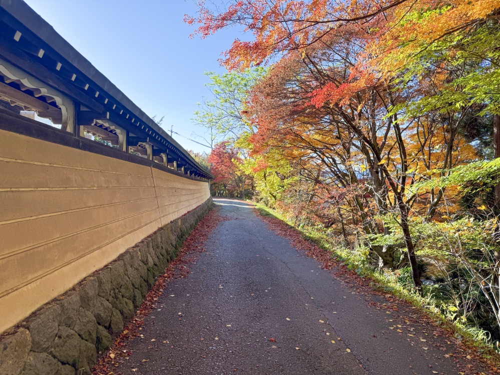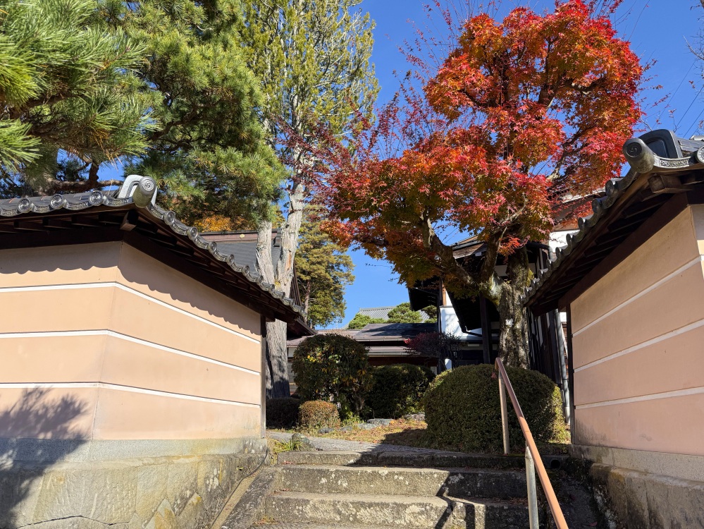 照蓮寺は城山公園二之丸公園の隣にあり、お寺の長い塀に沿って中門・本堂へ向かう通路の景観がおすすめです。秋には紅葉もきれいに色づきます。