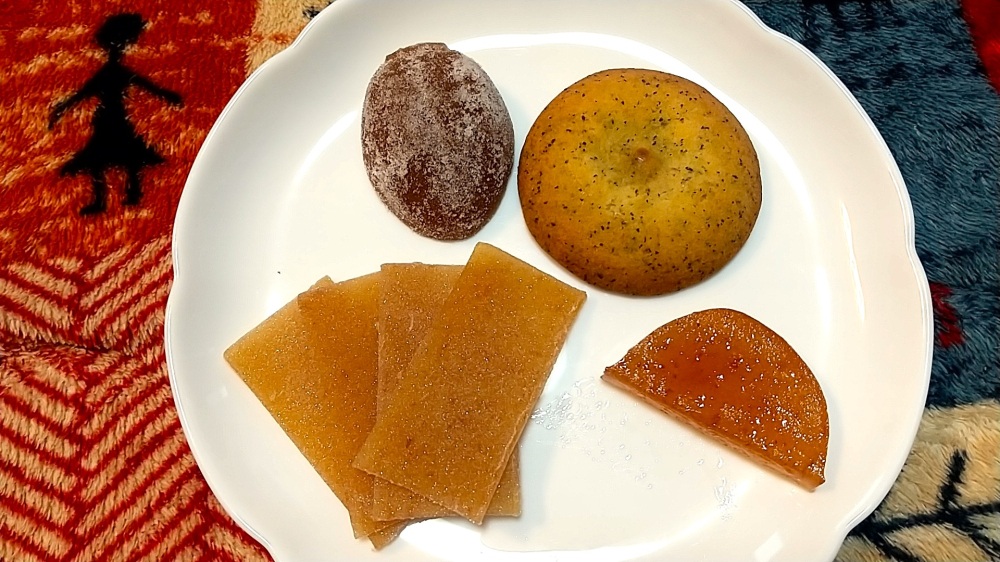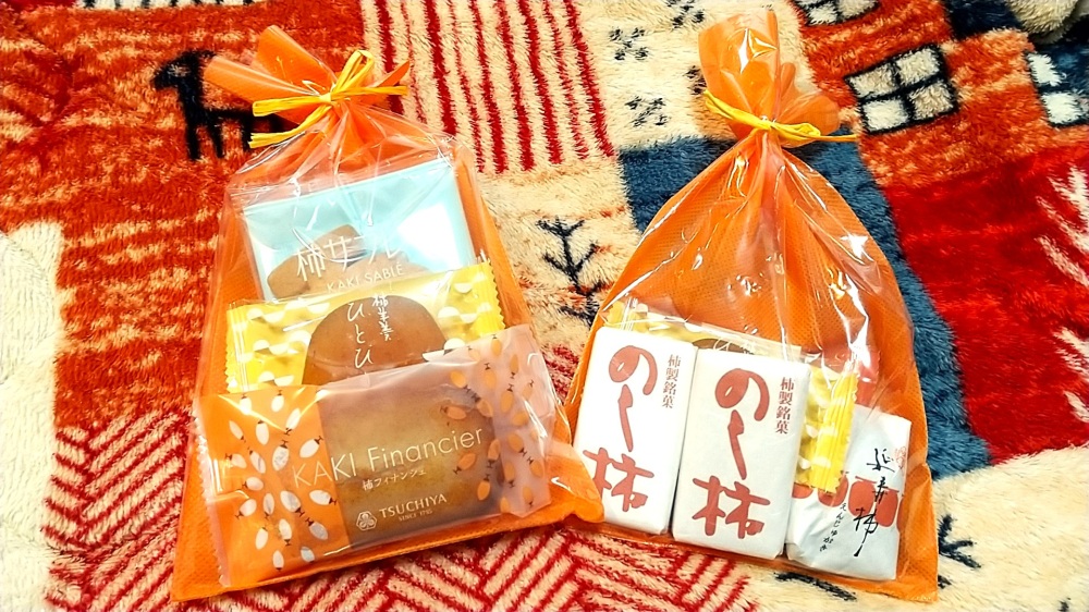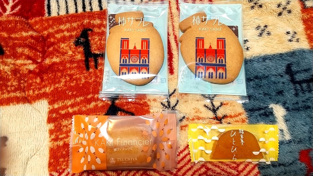 柿羊羹ひとひら1枚、柿サブレー2枚、柿フィナンシェ1個