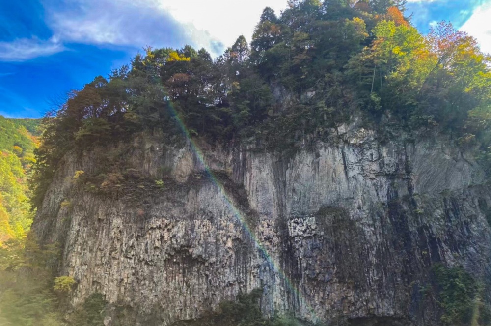 そびえたつ「巌立」を眺めながら、悠久の時に思いを馳せるのもいいですね。(※12月~3月は冬季閉鎖)