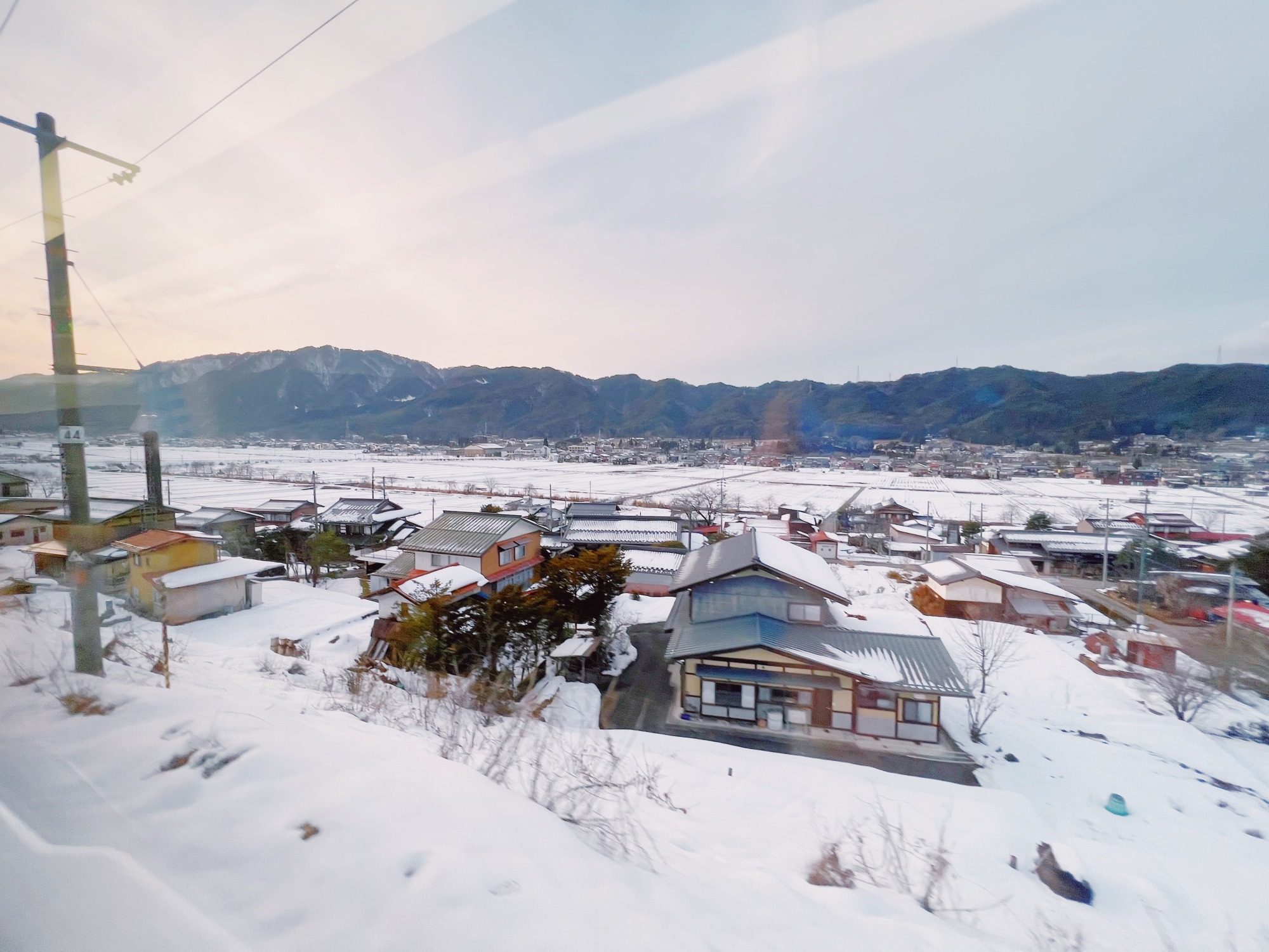 「トンネルを抜けると、そこは雪国だった……」旅情を味わえる車窓からの雪景色が、旅気分を盛り上げます。