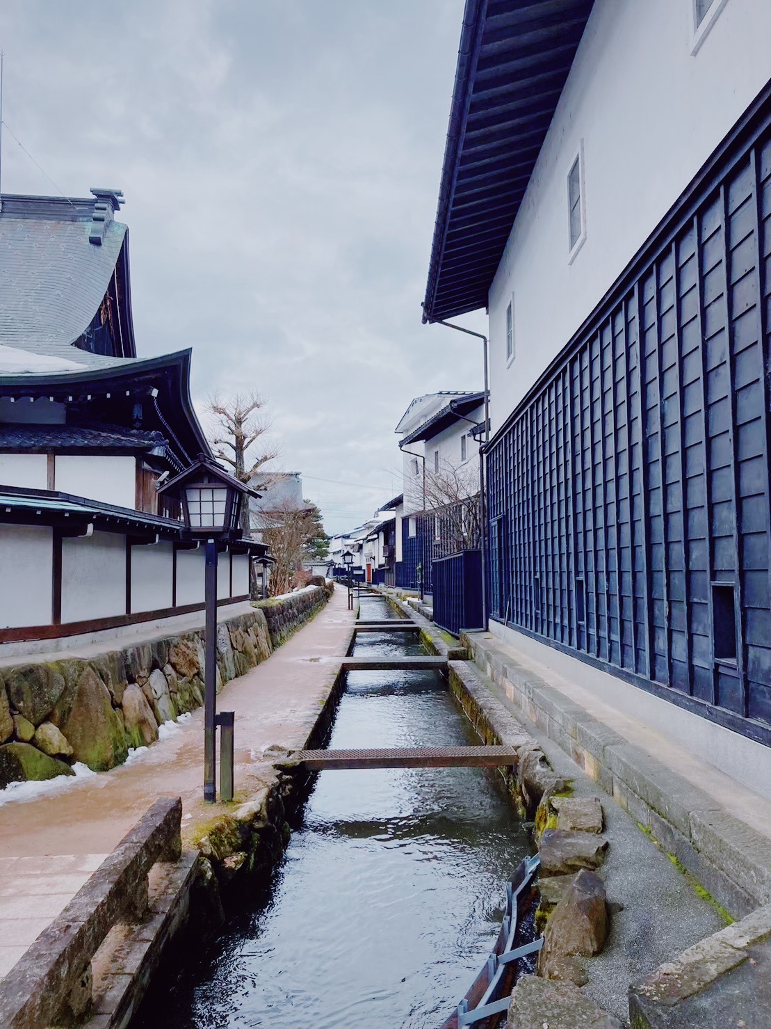 11月下旬から4月上旬までは、越冬のために別の場所へ引っ越しをします。鯉のいない静かな川のせせらぎと、雪の白と調和するような黒い木造りと白壁の蔵もまた、この季節だけの風情です。