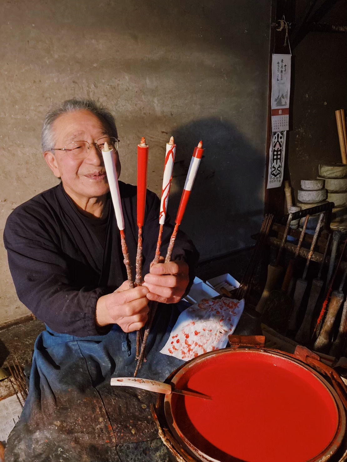 和ろうそくは、植物のハゼの実から抽出したロウを使い、職人さんによる手作業で年輪のように塗り重ねて作られます。