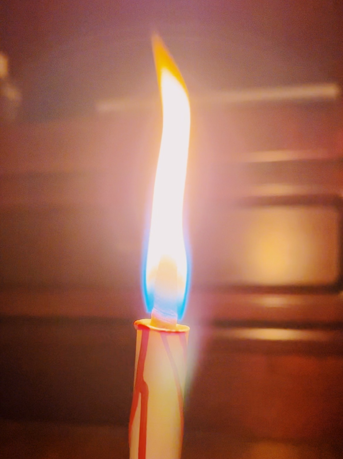 火をつけると、芯の中が空洞になっているため、風がなくても炎がパパパッと上下左右に揺らぎます。