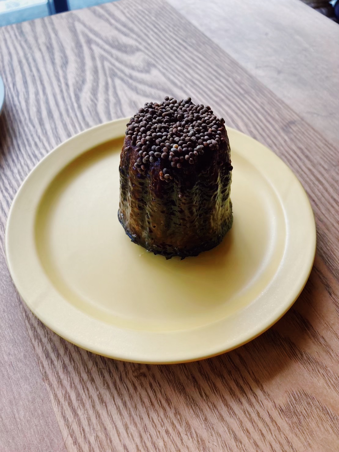 おすすめスイーツは、ひだカヌレ。地元の「牧成舎」の牛乳を使用。クロモジコーヒーとの相性も抜群です。