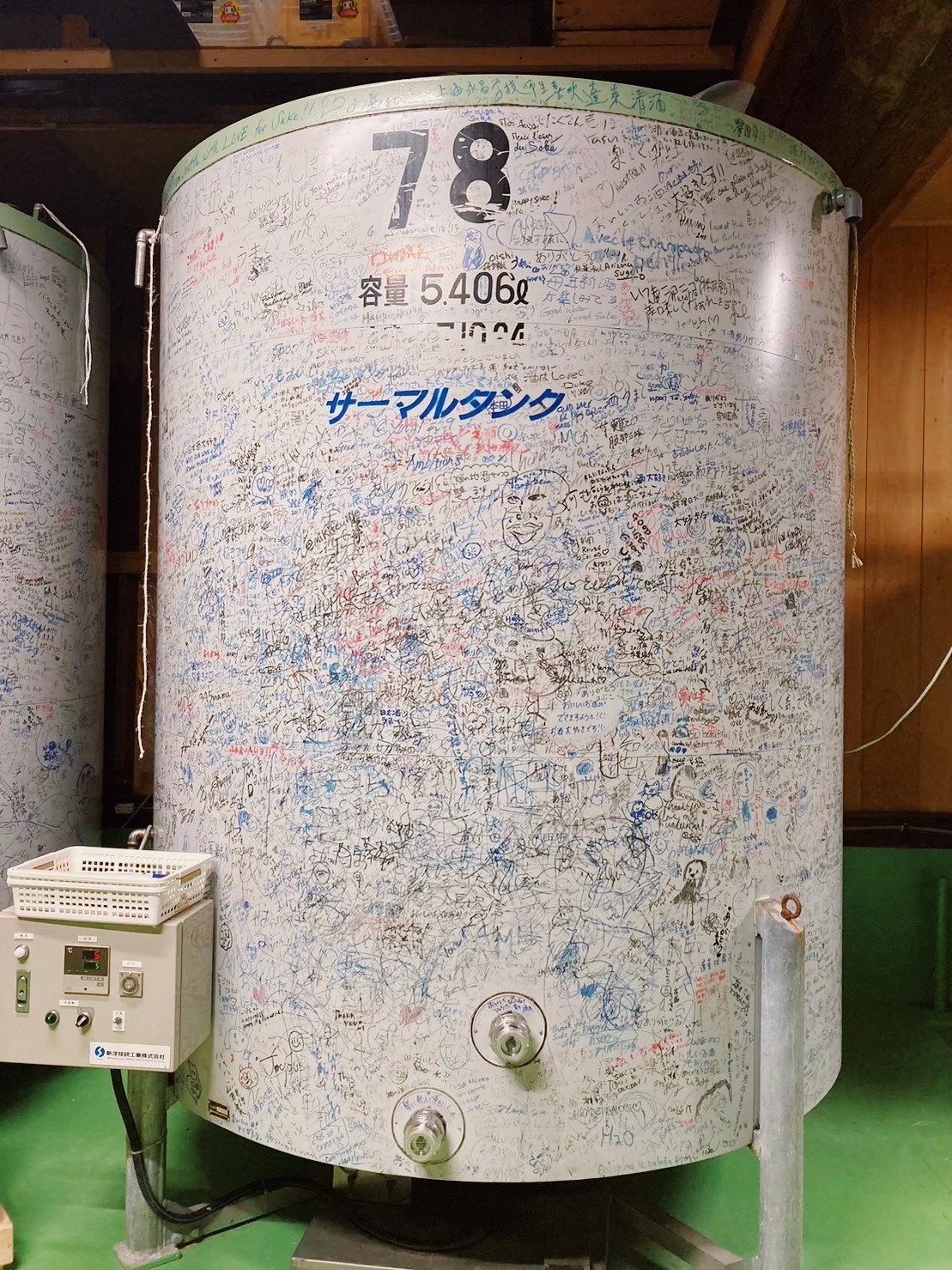 さらに「ありがとうパワー貯蔵」といって、タンクに「ありがとう」などの感謝の言葉を書き込み、言葉のパワーをお酒に伝えているんだとか。