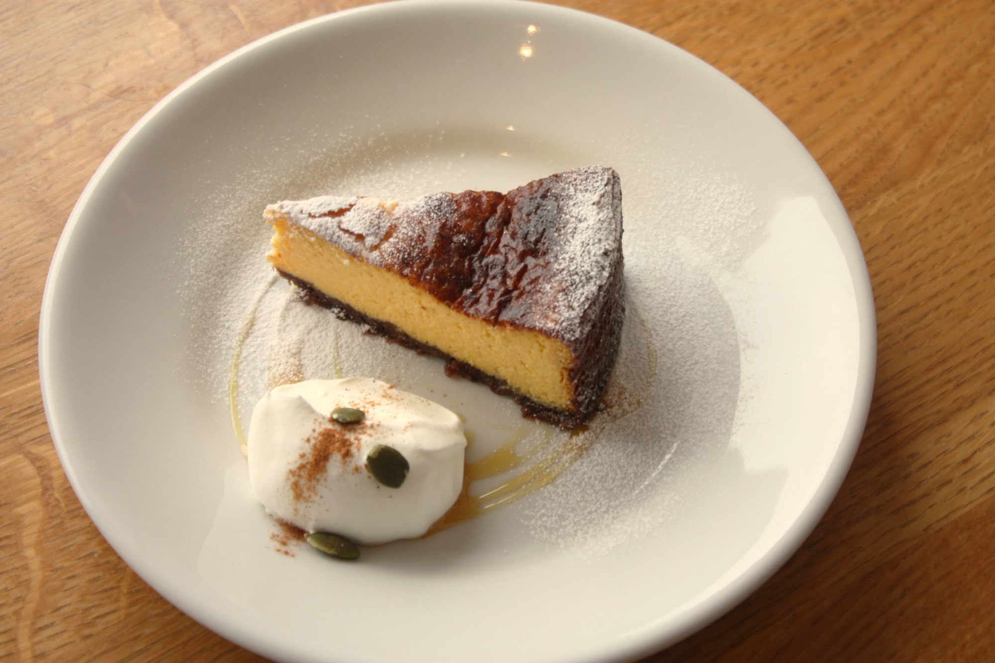 白を基調とした、落ち着いた雰囲気の店内でいただけるのは、「すくなかぼちゃのチーズケーキ」です。