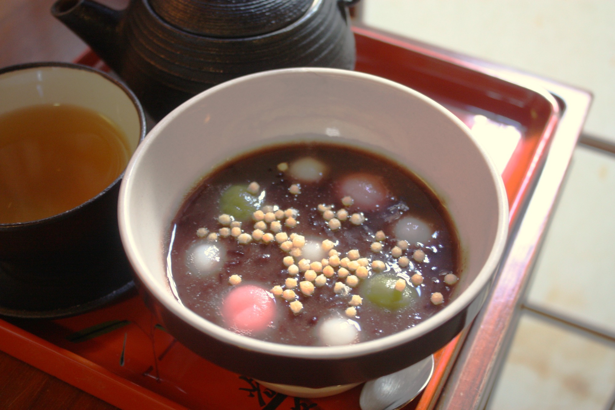 ピンクや薄みどりの白玉がかわいいぜんざいは、年齢問わず人気のメニュー。