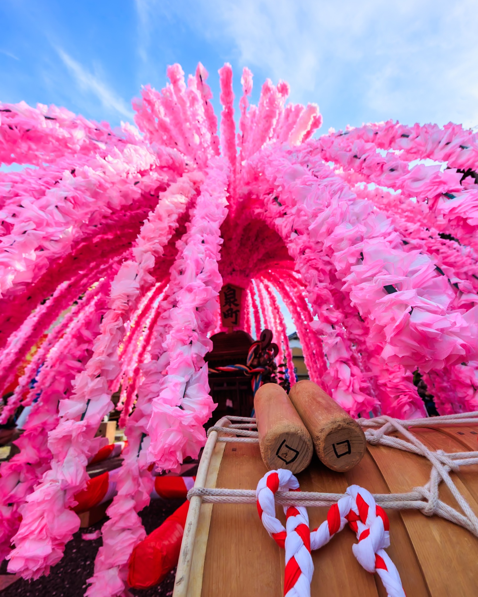 お祭りのハイライトといえば、豪華絢爛な山車の巡行です。