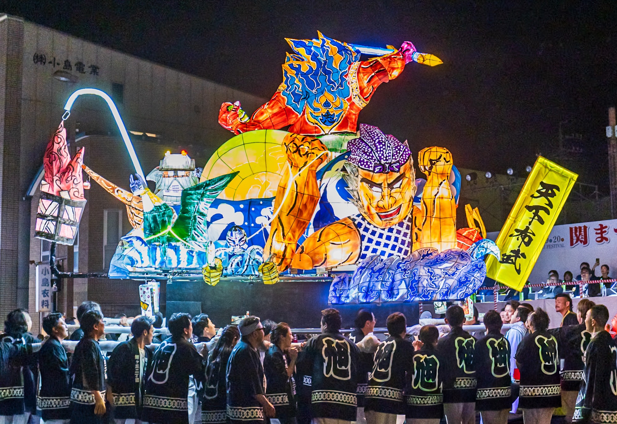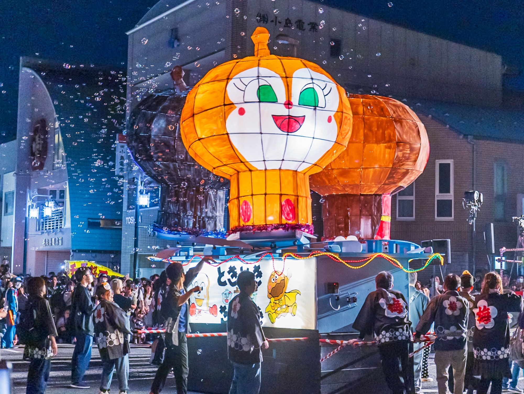 各自治体や企業が趣向を凝らして制作した、巨大な「あんどんみこし」が登場。その年の流行や地元のネタを盛り込んだユニークな作品が夜の町を練り歩き美しさや迫力を競います。