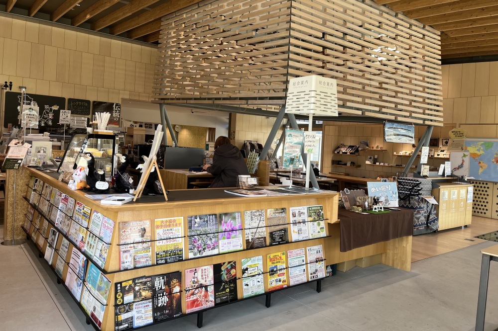 館内には、観光情報を検索できる情報サロンや、朝市販売所、郷土の特産品をそろえた物産ショップもあります。