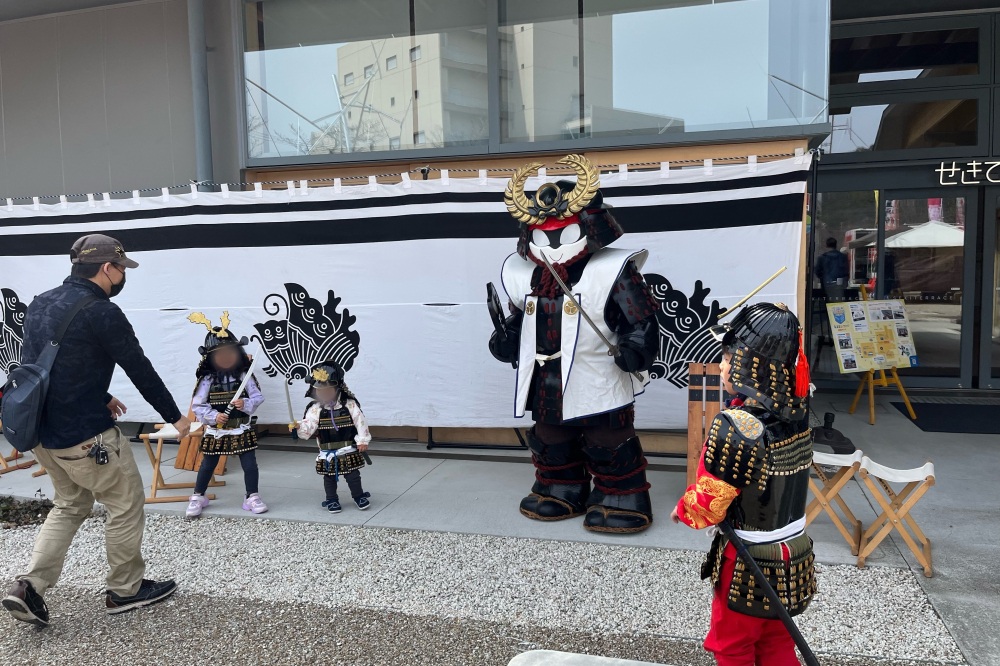 この日は「せきてらす5周年誕生祭」が開催され、ダンボール刀剣づくりや、かみのほゆずのエキス抽出体験、甲冑試着体験、キッチンカーなど、多彩な催しでにぎわっていました。