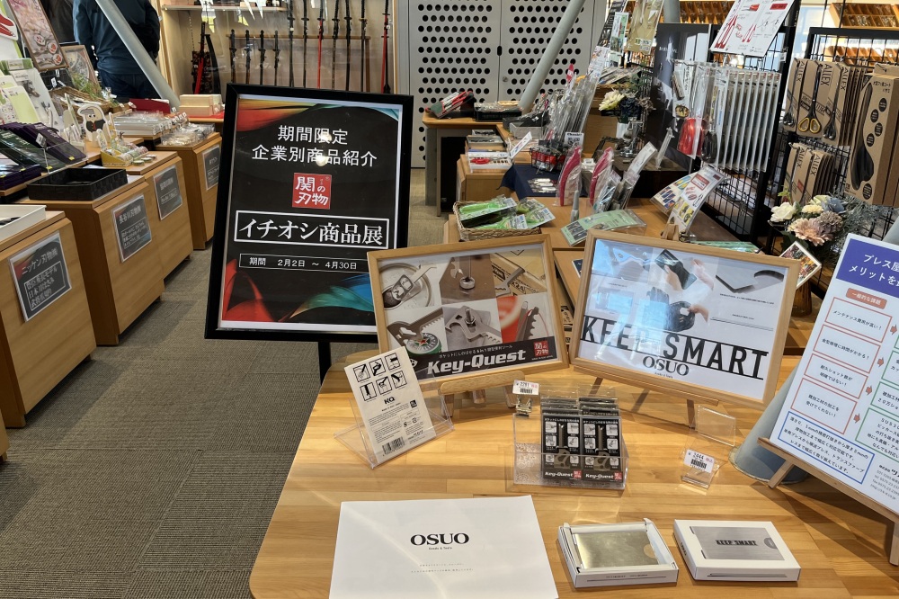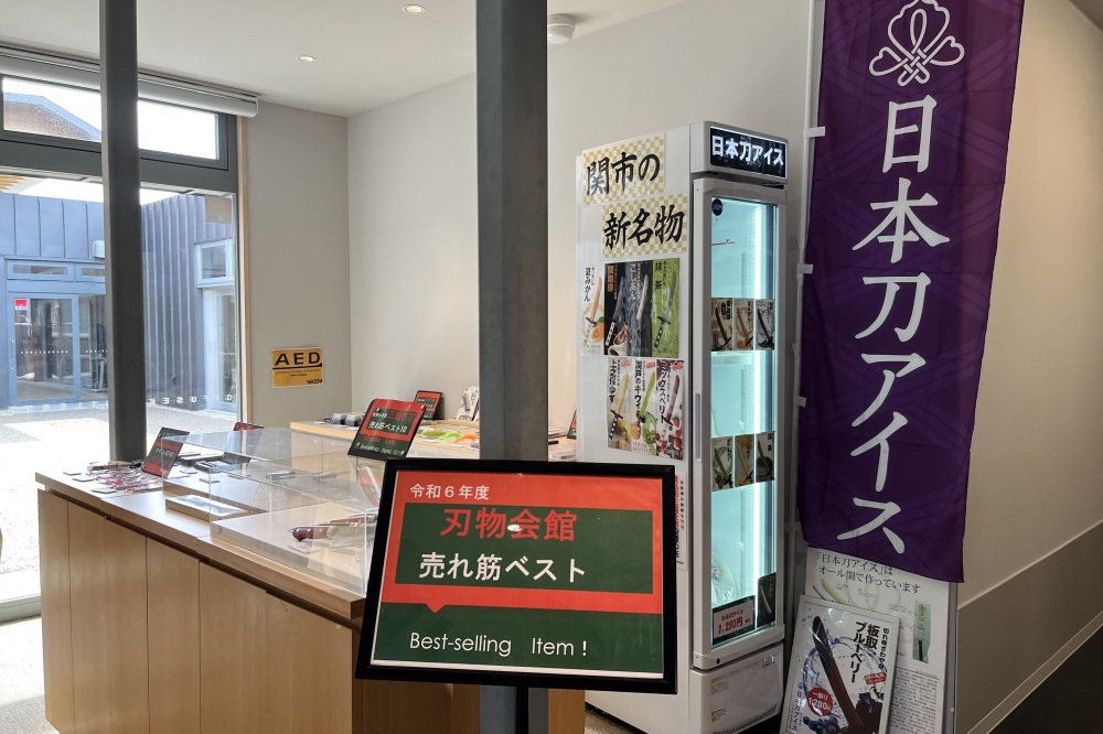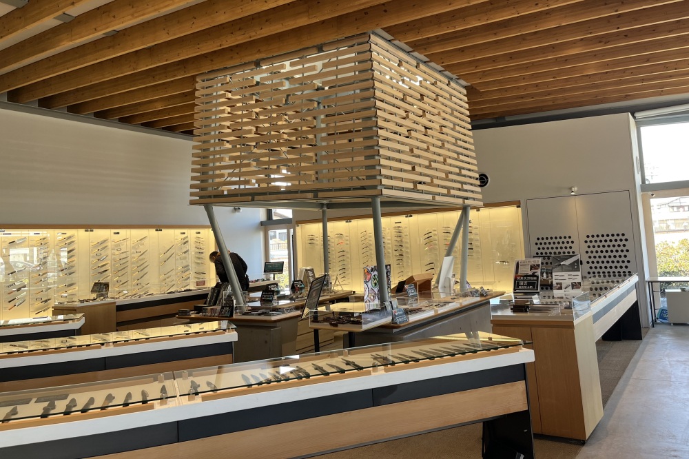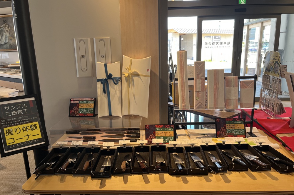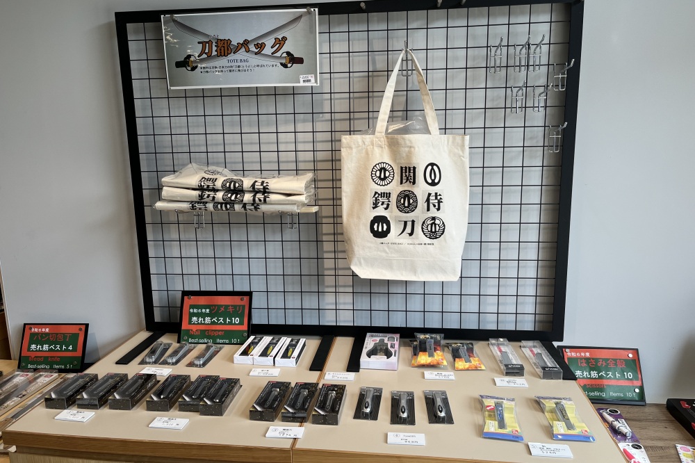 直売所では、自社ブランドの包丁「関吉秀作」をはじめ、関市内のメーカーから選りすぐった製品が並びます。