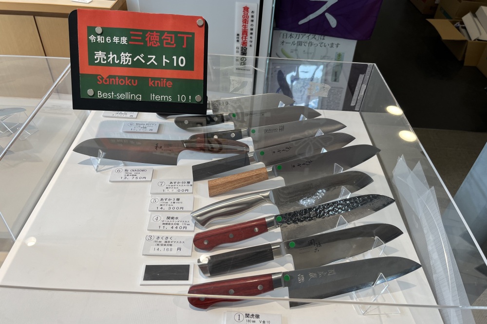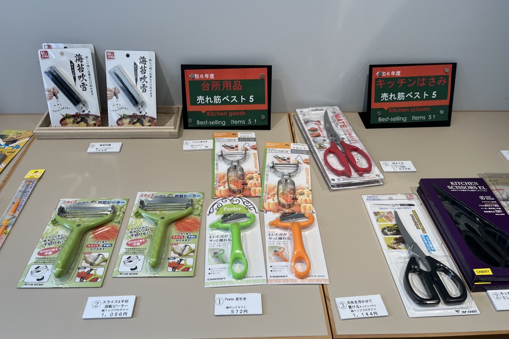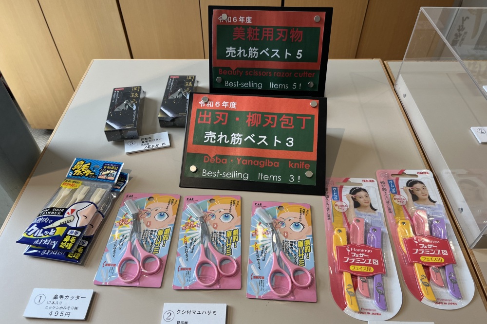 売れ筋商品も紹介されており、包丁のほか、ハサミやナイフ、爪切りなど幅広いラインナップがそろっています。