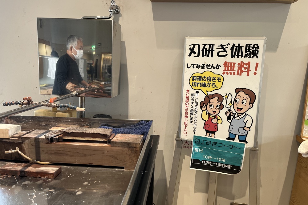 また、刃物研ぎ工房では、職人による包丁の研ぎ直しや、研ぎ方の指導を受けることもできます。このコーナーは、本当におススメ!