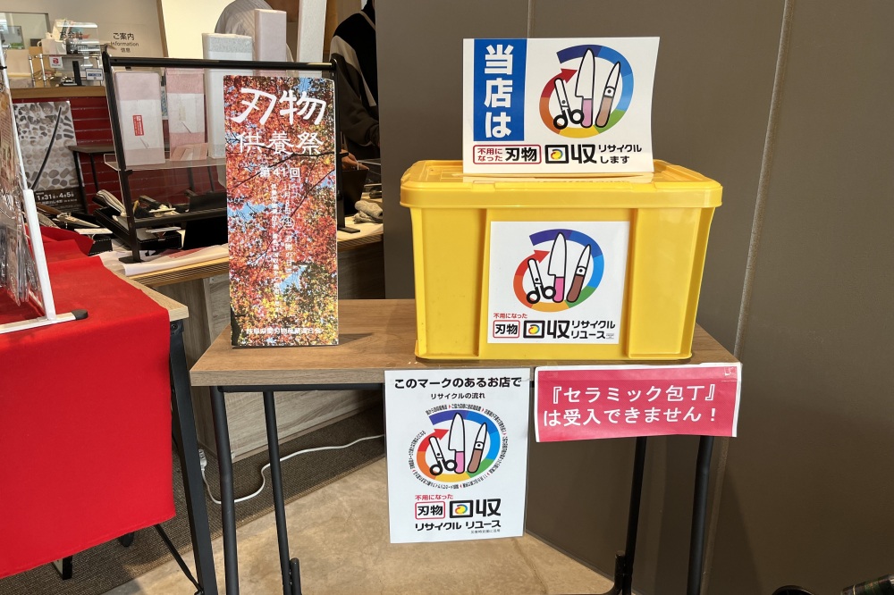 館内には刃物の回収ボックスも設置されています。愛用してきた刃物に感謝の気持ちを込めて手放せるのは、うれしい配慮です。
