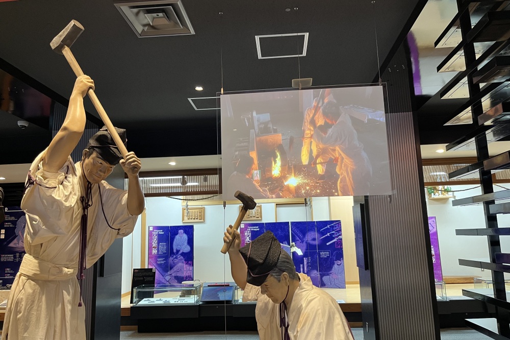ミュージアム内には日本刀鍛錬場があり、刀匠・藤原兼房による鍛錬の様子を間近で見学できます。参加者が大槌を持って鍛冶を体験することもできるそうです。