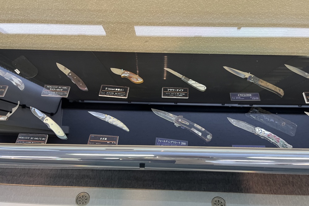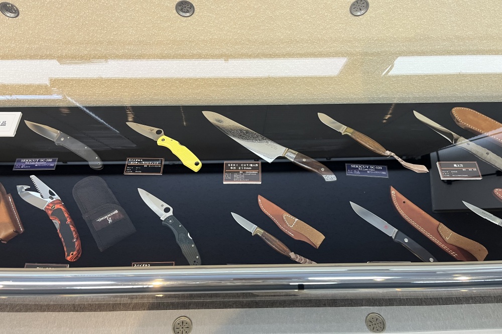 せきてらす内にある「岐阜関刃物会館」に足を踏み入れると、まず目に飛び込んでくるのは、ずらりと並ぶ刃物の数々。