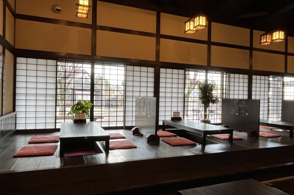 レストランは広々として落ち着いた雰囲気で、テーブル席のほか、掘りごたつ風の席も用意されています。
