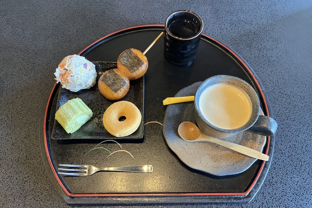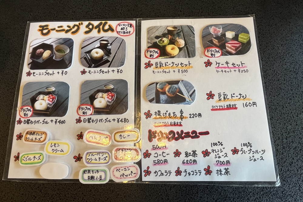 モーニングも充実しており、ドリンク代のみのセットに加え、プラス料金で日替わりベーグルセットや豆乳ドーナツセットを楽しむことができます。今回は、ベーグルと豆乳ドーナツのセットをいただきました。