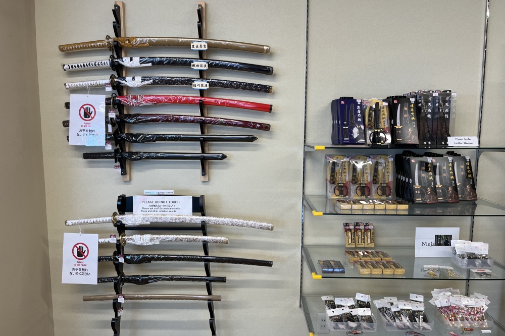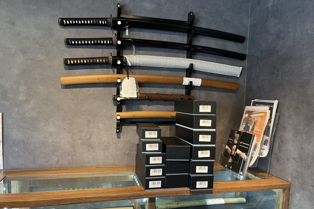 日本刀の販売も行っており、実際に手に取って写真を撮ることもできます。ずっしりとした重みを感じるだけでも貴重な体験。