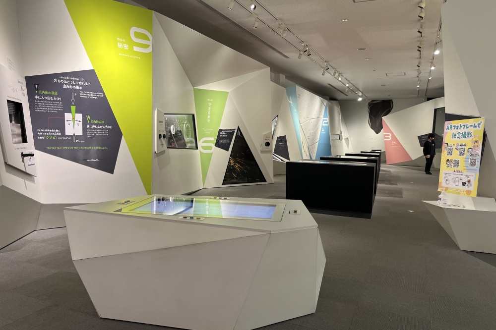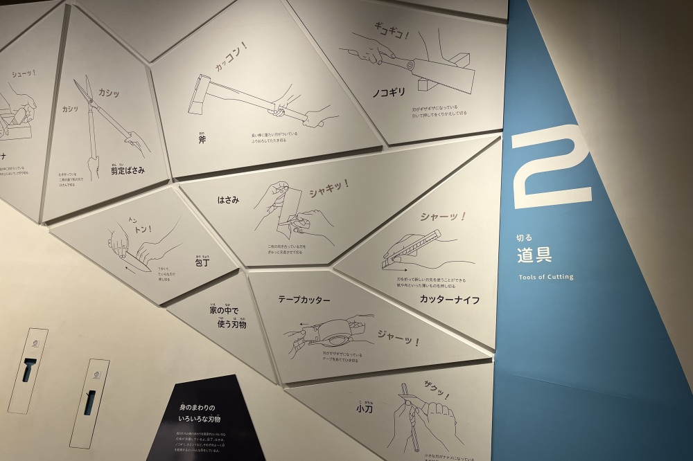 2階では、「切る」とは何かをテーマに、石器時代から現代までの刃物の歴史や仕組みを、映像や体験を通して学べます。