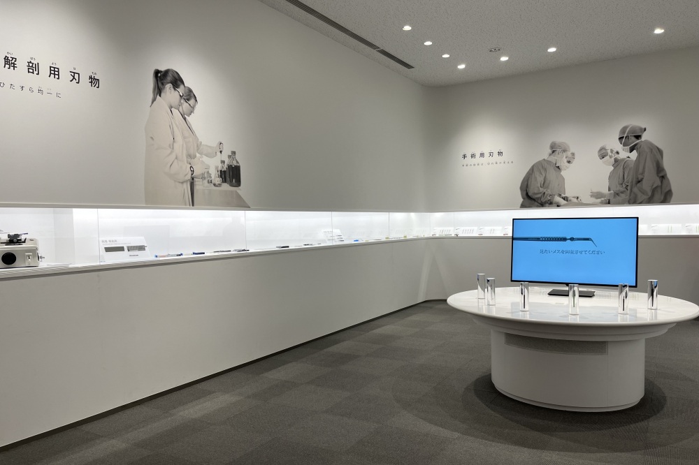精密刃物の展示では、医療用や産業用など、さまざまな分野で活躍する刃物を紹介。