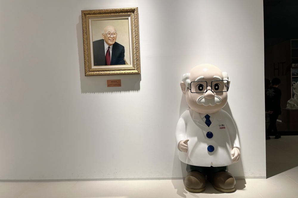 館内の見どころを案内してくれるマスコットキャラクター「ヒゲ博士」。