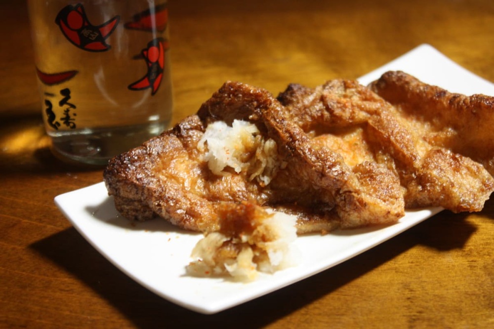 「あげづけ」は、ふわふわのお揚げに醤油ベースのタレを染み込ませた、飛騨の定番おつまみです。