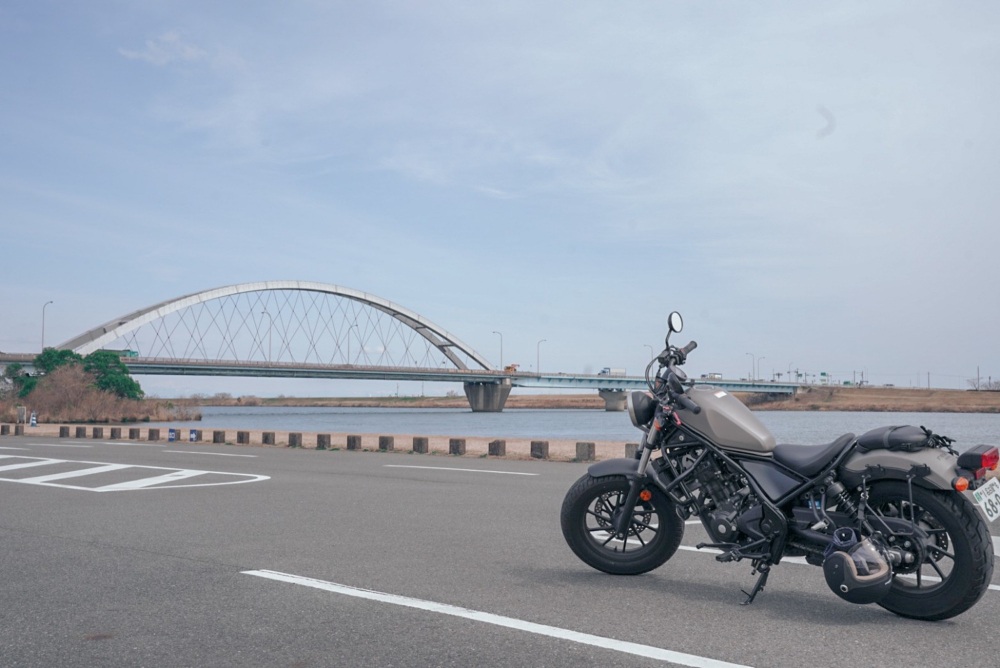 そよぐ風はまだ少し冷たいですが、日差しはとても暖かく、季節はもうすでに春だなと感じました。木曽三川公園は、その名前の通り揖斐川・木曽川・長良川の三川に沿って、さまざまな施設が作られています。まずは、バイクを駐車場へ。駐車場は朝の9:00~夕方17:00まで無料で使用することができます。(駐車場の時間は、季節によって異なりますので、HPにてご確認ください。)バイクを駐車したら、公園まで階段を登って行きます。