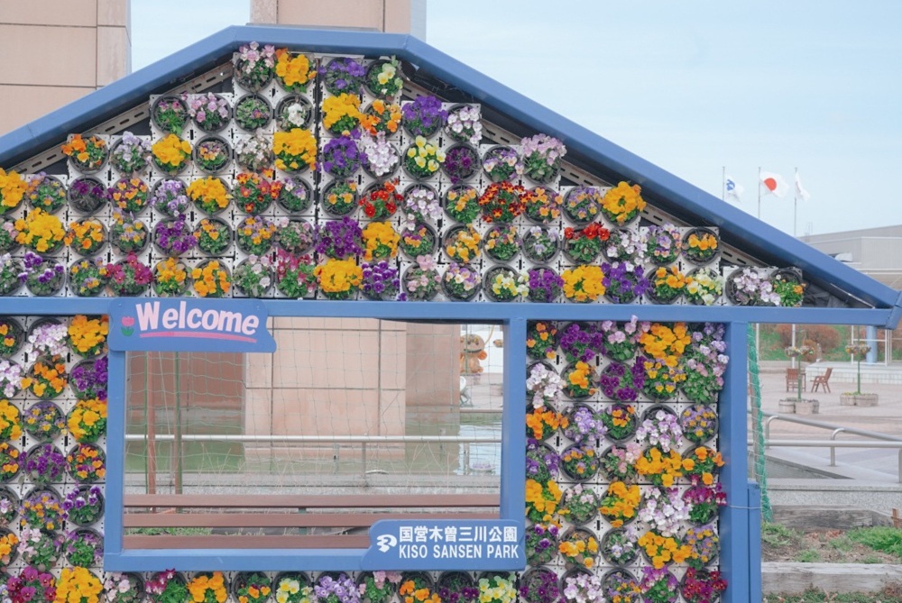 木曽三川公園センターでは、季節によってさまざまなお花を楽しむことができます。今回は、春の季節にお邪魔したので、たくさんのカラフルなお花がお出迎えしてくれました。