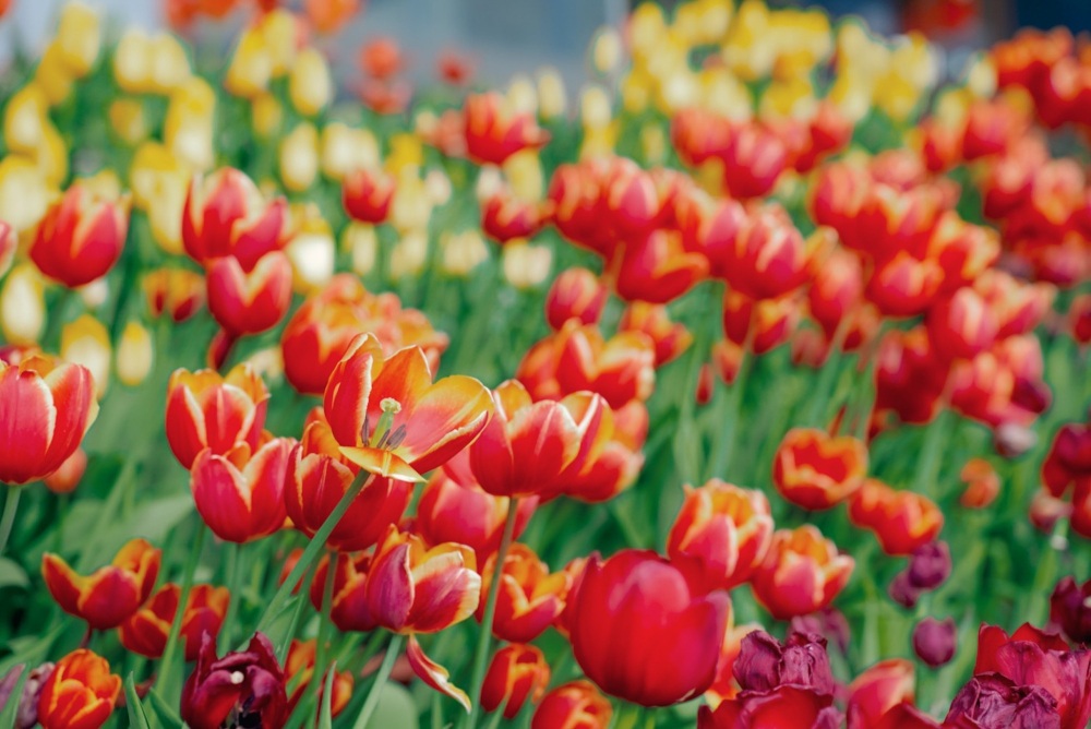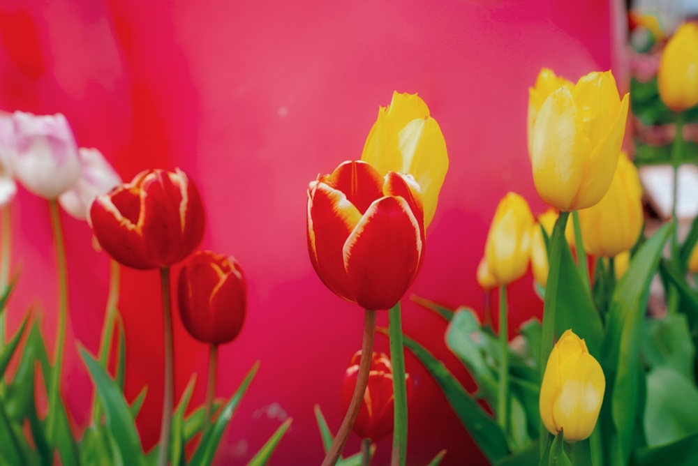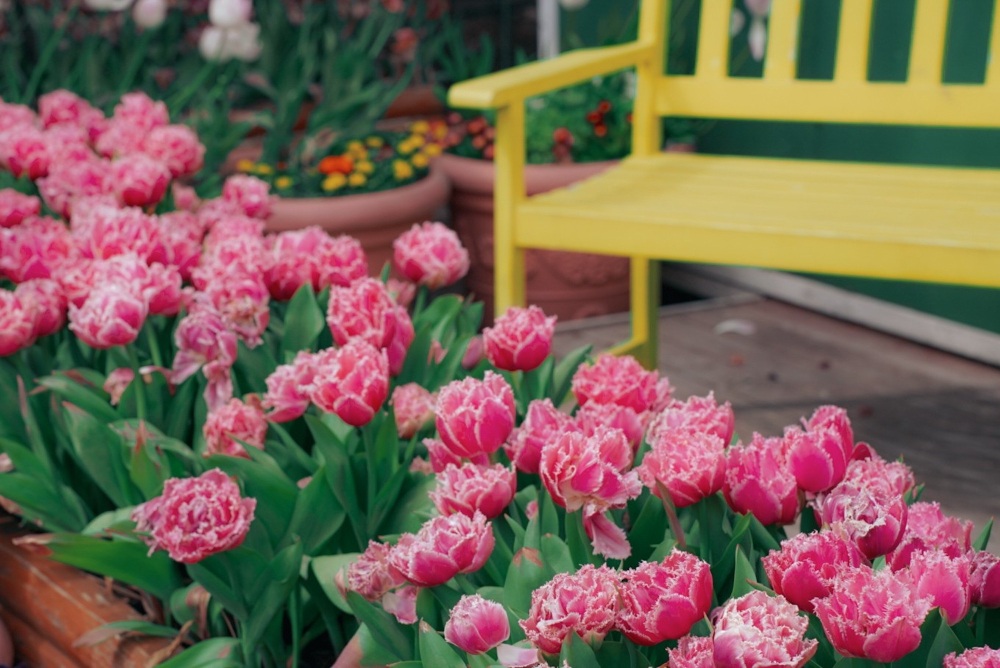 今回は、チューリップ祭りが開催されていたので、色とりどりのチューリップを楽しむことができました。花びらがギザギザの珍しいピンク色のチューリップや、よく見かける赤や黄色のチューリップまで、どこをみても可愛いチューリップだらけです。これらのチューリップは「アイスチューリップ」と呼ばれ、本来は咲かない寒い時期に咲くよう、開花時期を調整したチューリップたちです。チューリップは本来、寒さを感じた後に、暖かさを感じたら芽を出すのですが、その特性を利用して、球根を冷蔵庫で数週間冷やし、芽を出させたのがアイスチューリップです。気温の低い時期に開花したチューリップたちは、花もちがよく、1ヶ月近くは綺麗な花を咲かせるそうです。