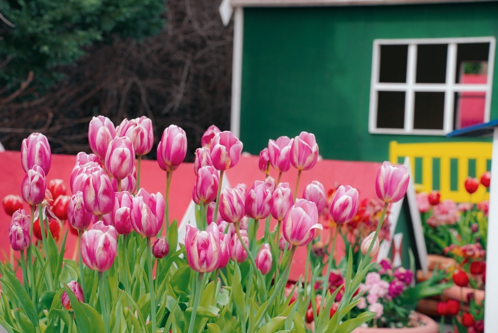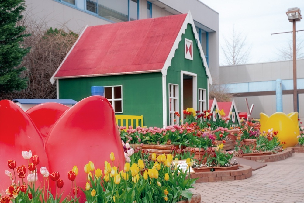 公園内には、お花と一緒に撮影できるスポットがたくさんあるので、アイスチューリップと一緒に撮影することもできます。北欧風の小さな建物の前で撮影すると、可愛い写真が簡単に撮れるので、スマートフォンでもお手持ちのカメラでも、たくさん撮影してみてはいかがでしょうか?私が取材をした日には、お子さんの撮影をするお母さんの姿や、ご夫婦やカップル、お友達同士での撮影など、とても楽しい時間を過ごしていらっしゃるように見えました。