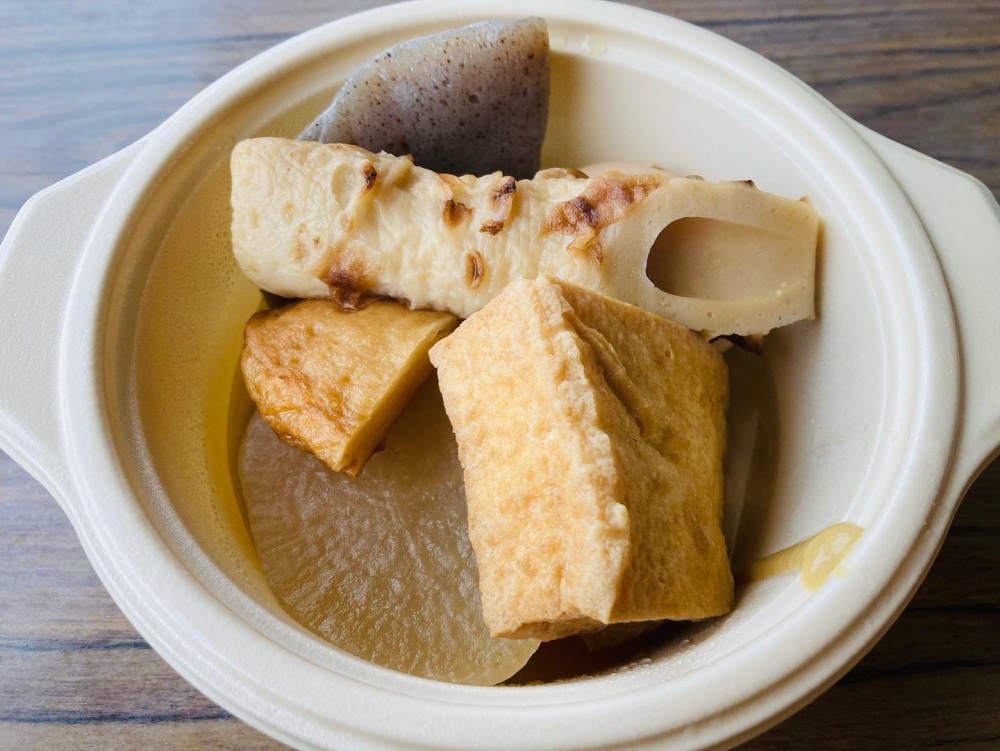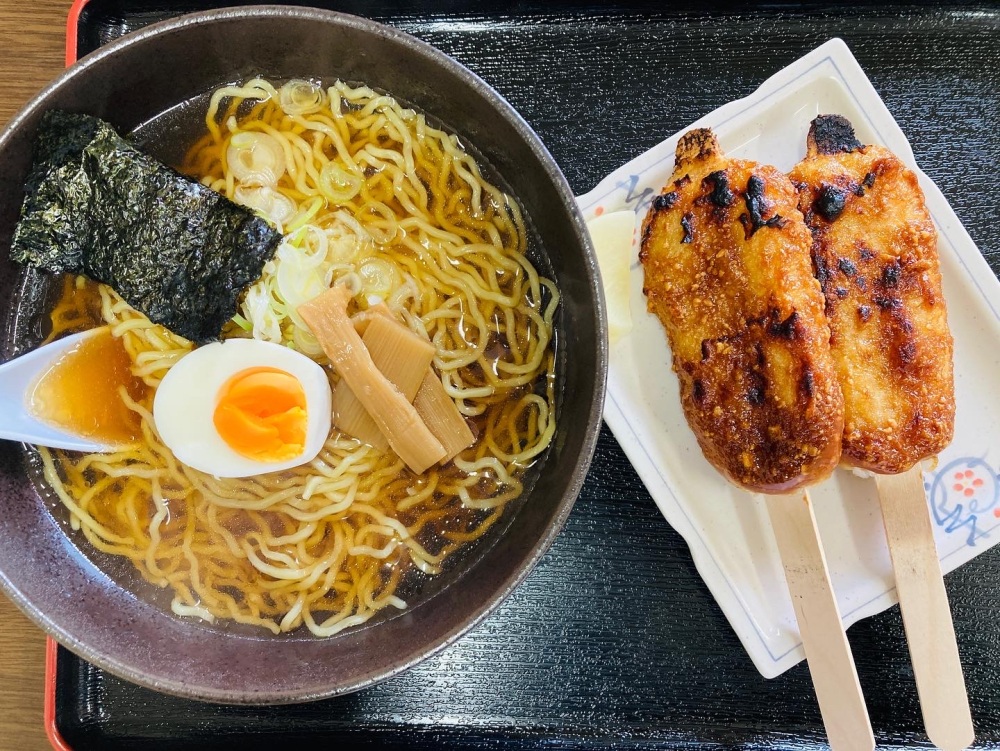 恵那市山岡町の飯高観音萬勝寺にある「かんのん茶屋」は、飯高観音で数百年前から伝わる五平餅を提供しています。地元で採れたお米を毎朝、炊いて、手作りしているという自慢の五平餅は、まるで、つきたてのお餅のように、ふっくら柔らかで、冷めても固くならず美味しくいただけるのが特徴。タレに入れている落花生のつぶし方が粗めでより風味が感じられます。ラーメンとセットにして食べるのがオススメ。相性抜群ですよ〜