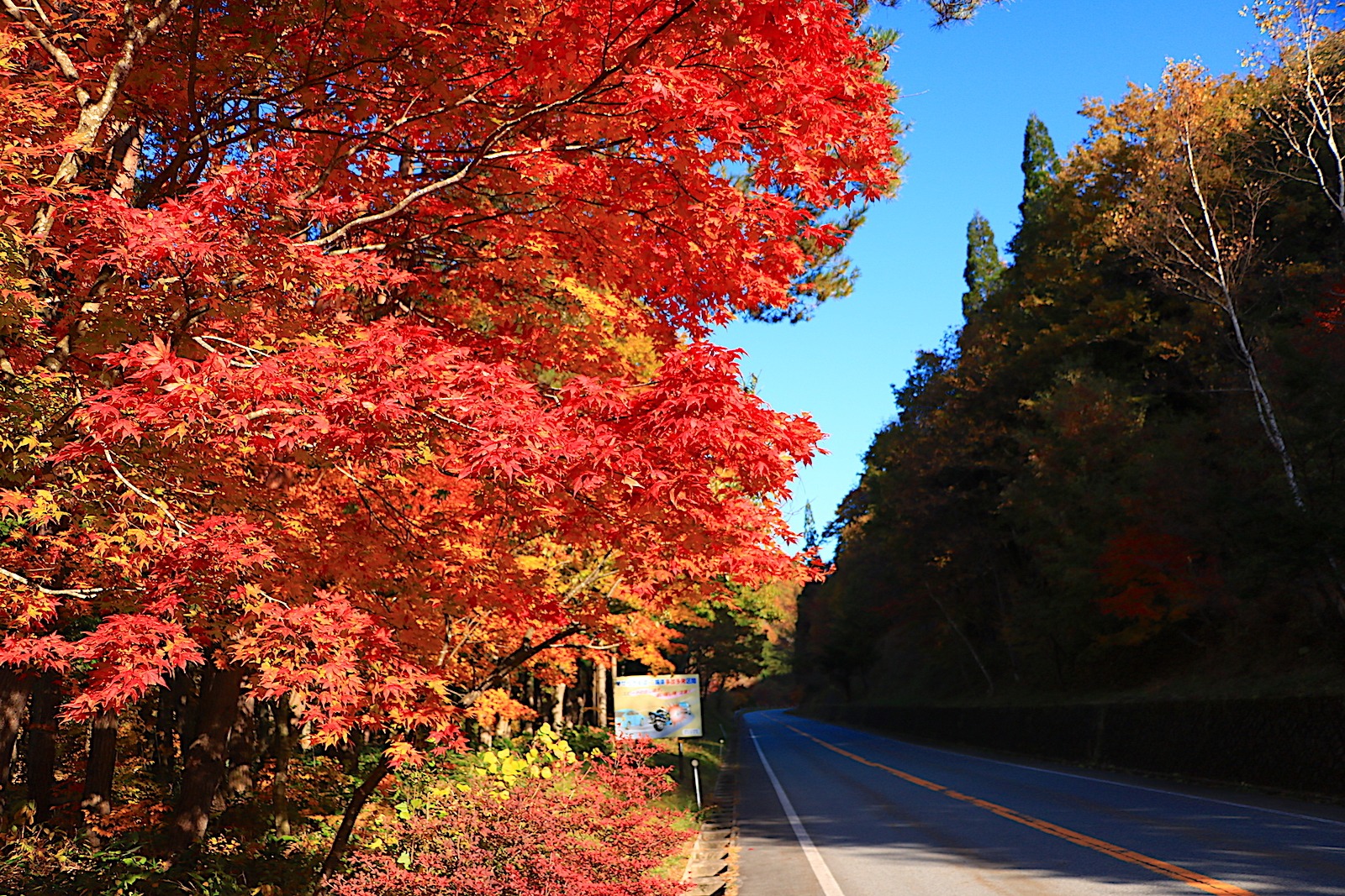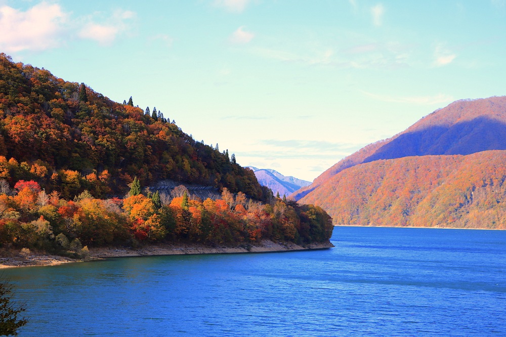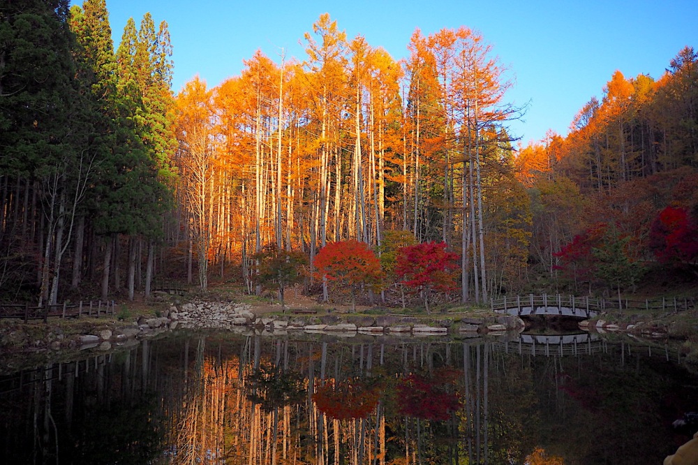 そして紅葉は県内屈指の美しさ。燃えるように鮮やかに色づく木々が、日本の原風景を彩ります。爽やかな秋の青空との対比が気持ち良いです。