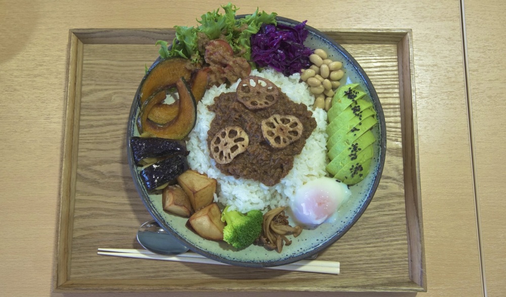 岐阜に因んだ「海鮮金華山」に惑わされそうになりながらも、おススメと書いてあった「ゴロゴロ野菜のキーマカレー」をいただいた。