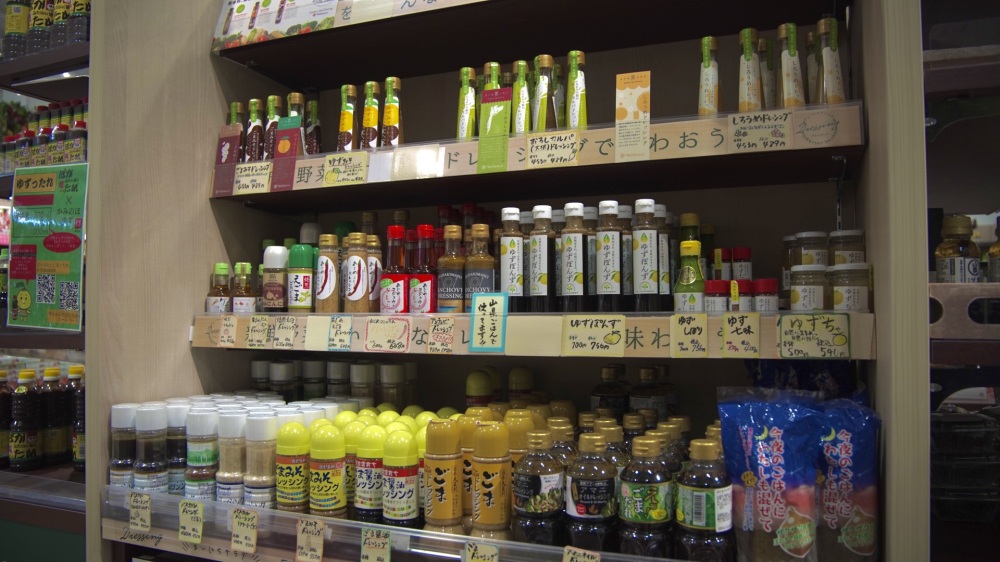 上之保の柚子ポン酢など、柚子を使った商品もたくさんあるが、「万人のタレ」や「ばかたれ」など、もはやお土産コーナーのレベルを超えている。