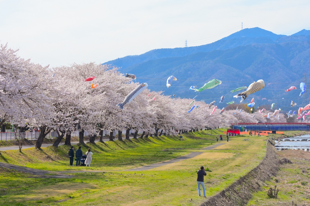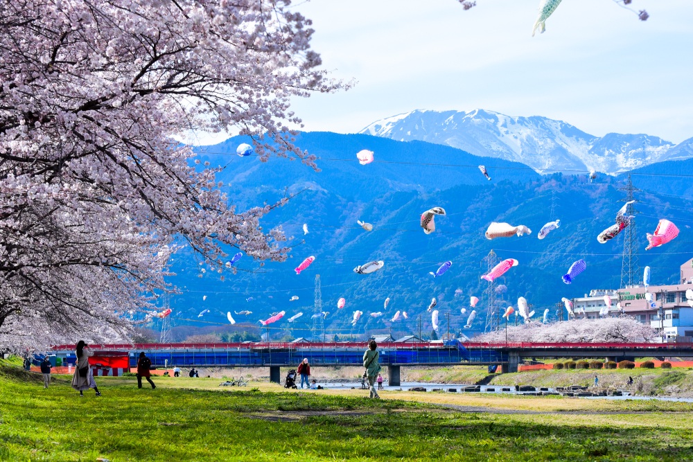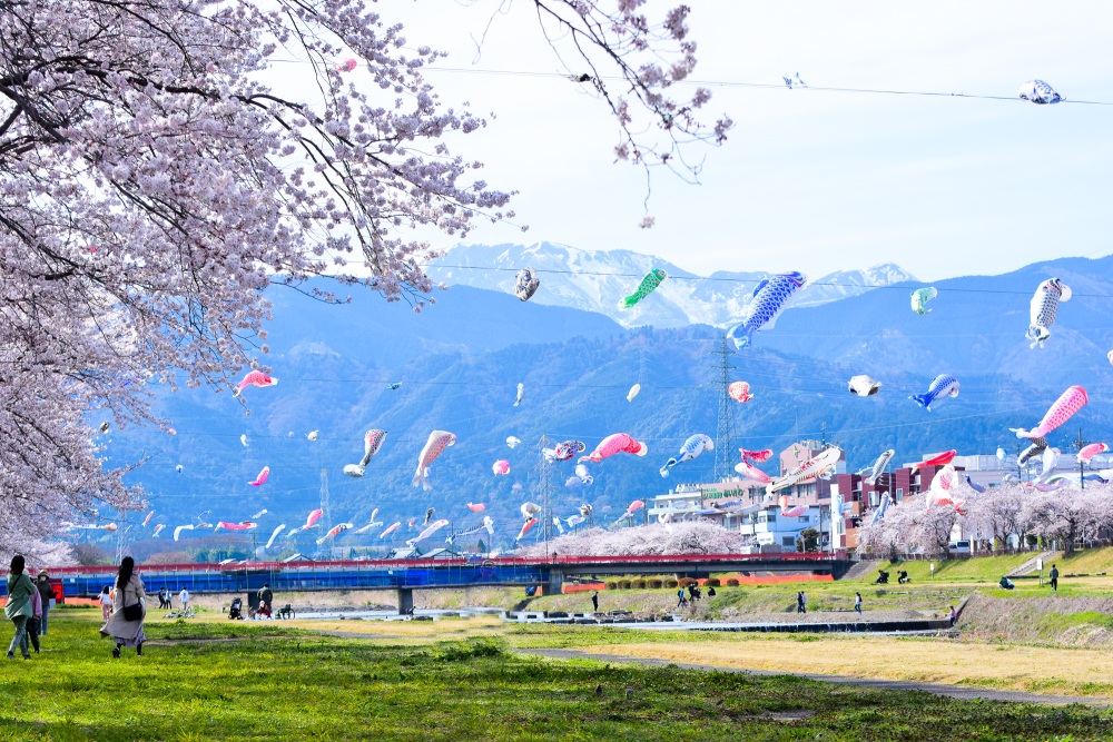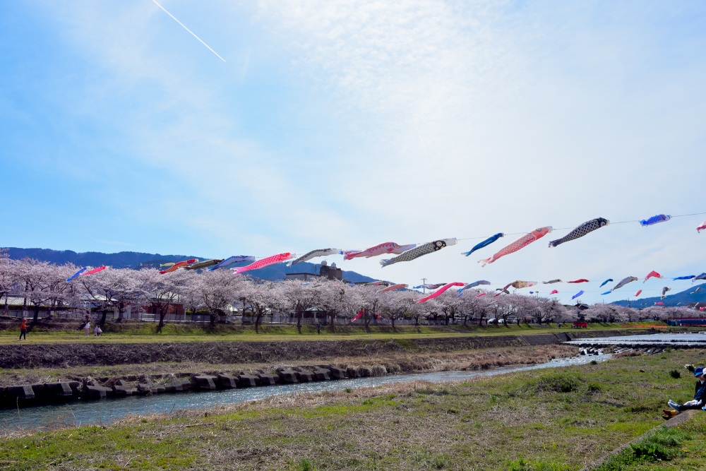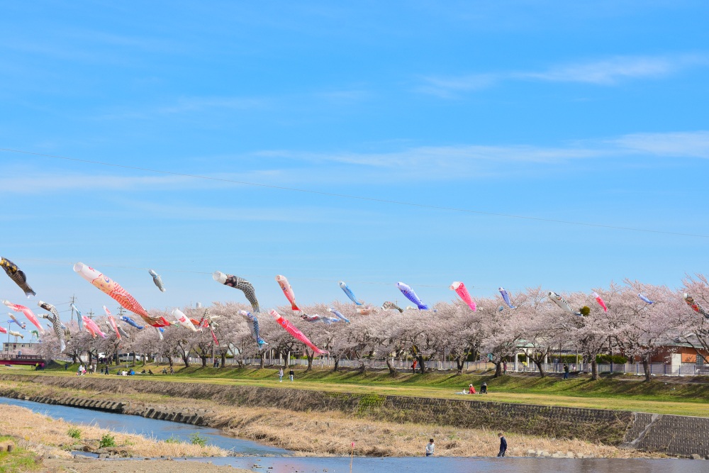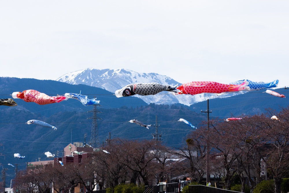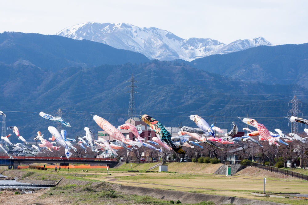 全国のこいのぼりイベントは5月の連休前後の2週間くらいで行われるが多いのですが、垂井町の「相川鯉のぼり一斉遊泳」は3月下旬から5月初旬までと期間が長いのも特徴です。その間に雪景色から桜といろんな景色が楽しむことができます。春のさわやかな風と絶景を楽しみにぜひ訪ねてみてください。