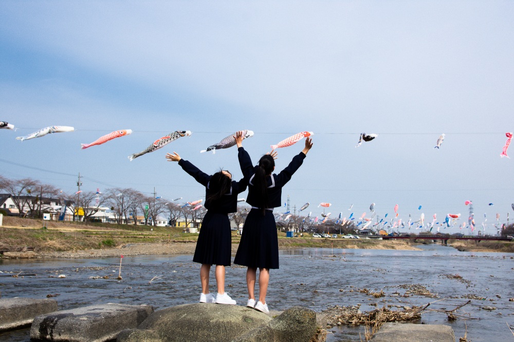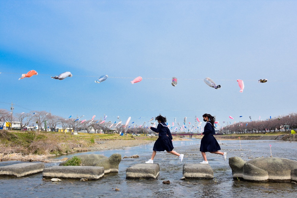 岐阜県垂井町の春の風物詩「相川こいのぼり一斉遊泳」