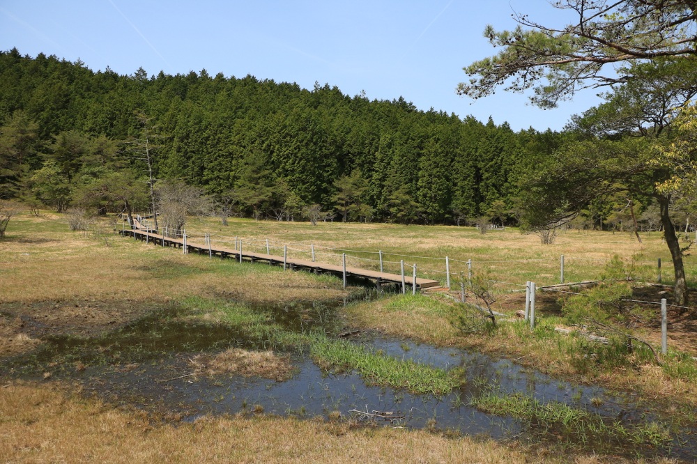 「黒の田東湿地」へ到着すれば、いきなり開放的な空間に。先ほど樹林帯に覆われていただけに、景色の変化に驚くことでしょう。