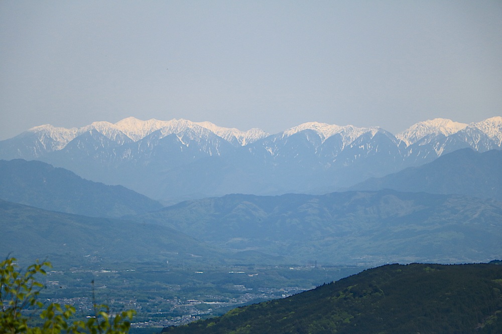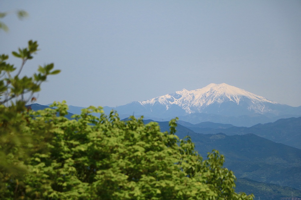 また少し北を見渡すと、木曽の名峰「御嶽山(おんたけさん、標高3067m)」も!初夏には十分に残雪が残っており、別格の存在感を誇っています。