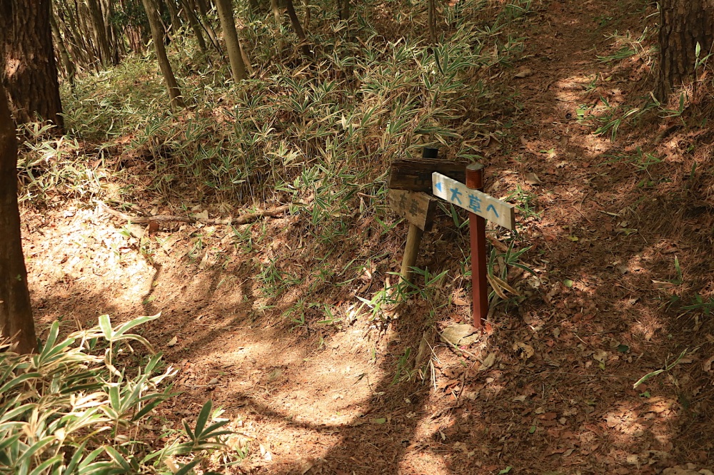 途中、尾根沿いに馬の背山(標高767m)を経由して、約20分でアプローチすることができます。