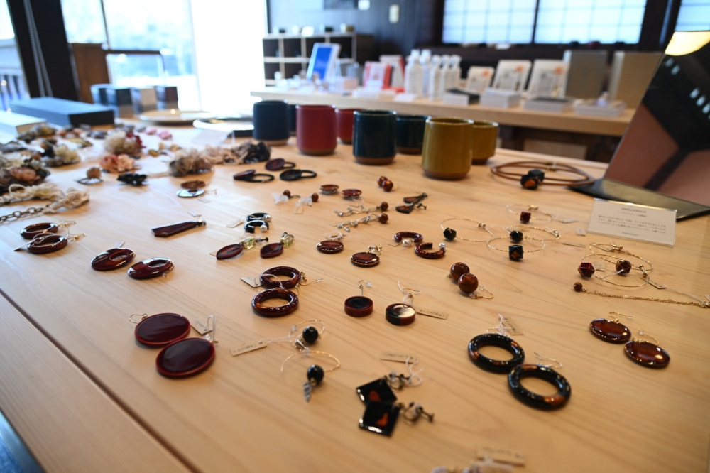 併設するセレクトショップでは、飛騨春慶のアクセサリー等や書籍なども販売しています。