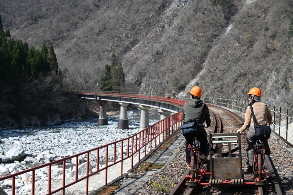 ルートは2つ!飛騨神岡 廃線を楽しむ レールマウンテンバイク「ガッタンゴー!」