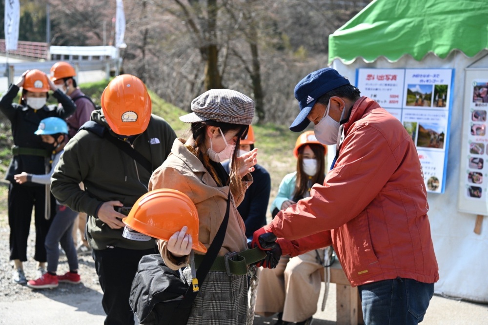 ルールの確認をしたら、安全帯とヘルメットを装着して、しゅっぱーつ!