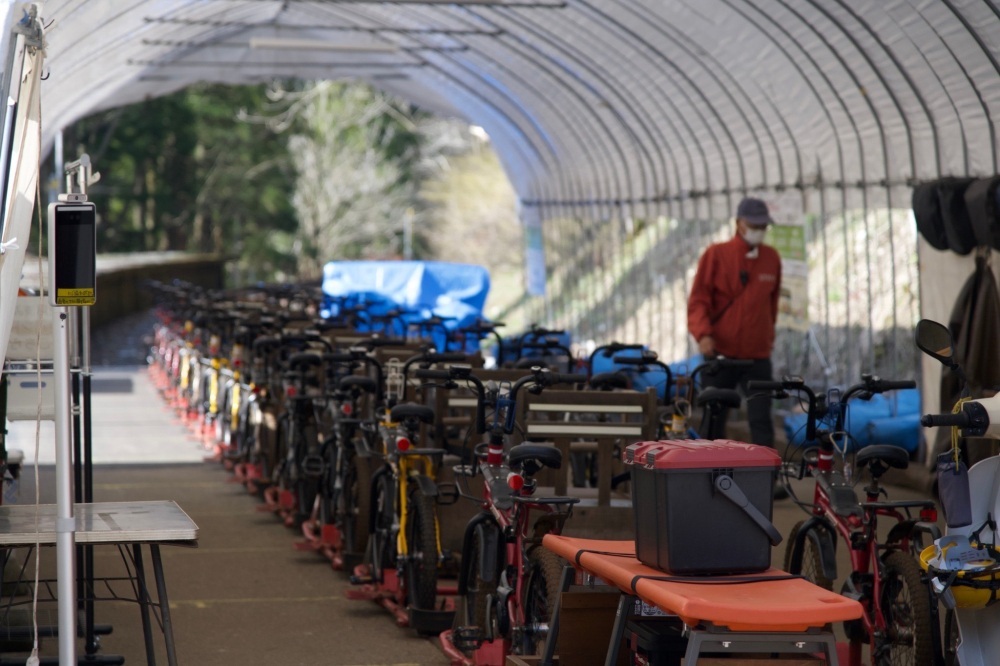 現在「まちなかコース」と「渓谷コース」の2コースがあり、どちらのコースも電動アシスト付きマウンテンバイクなので、体力に自信の無い方も、スイスイ漕ぎ進めます。