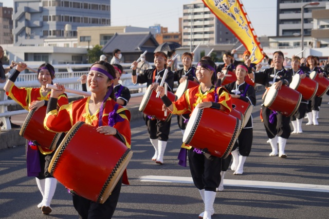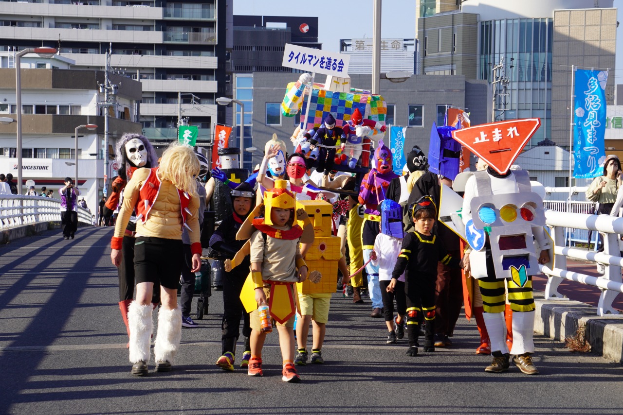 市長、議長、区長が扮する3武将と、華やかな公募の奥方役の後に、ボーイ・ガールスカウト扮する可愛らしい少年武者や虫の垂れ姿が続きます。武者行列の前後には、太鼓、踊り、鼓笛など市民によるパレードが賑やかにパレードします。また、多治見のキャラクターうながっぱも、友達のキャラクターと一緒にパレードに参加し、人気を集めています。