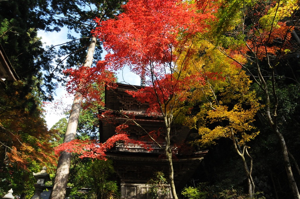 風格のある建物と鮮やかな紅葉のコントラストが趣きある静かな山寺で美濃では谷汲と並ぶ紅葉の名所。