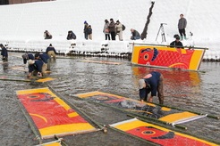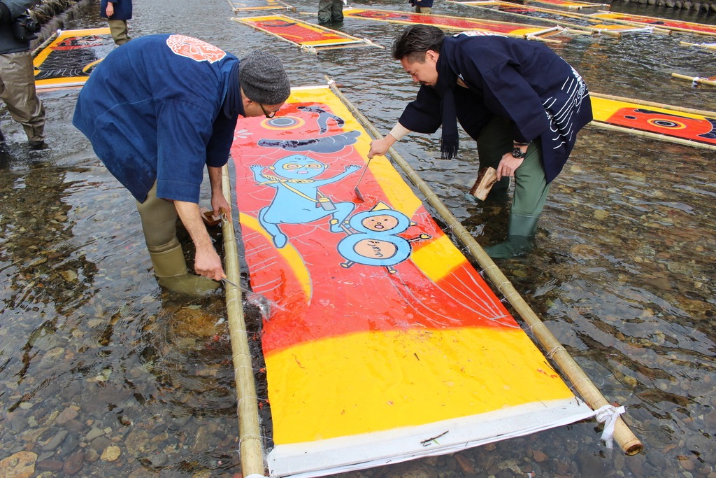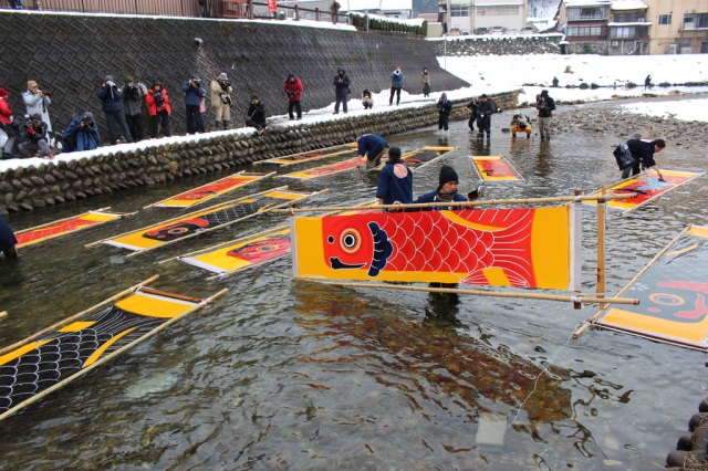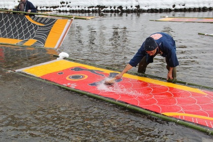 郡上の冬の風物詩「郡上本染 鯉のぼり寒ざらし」
