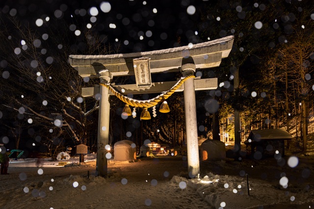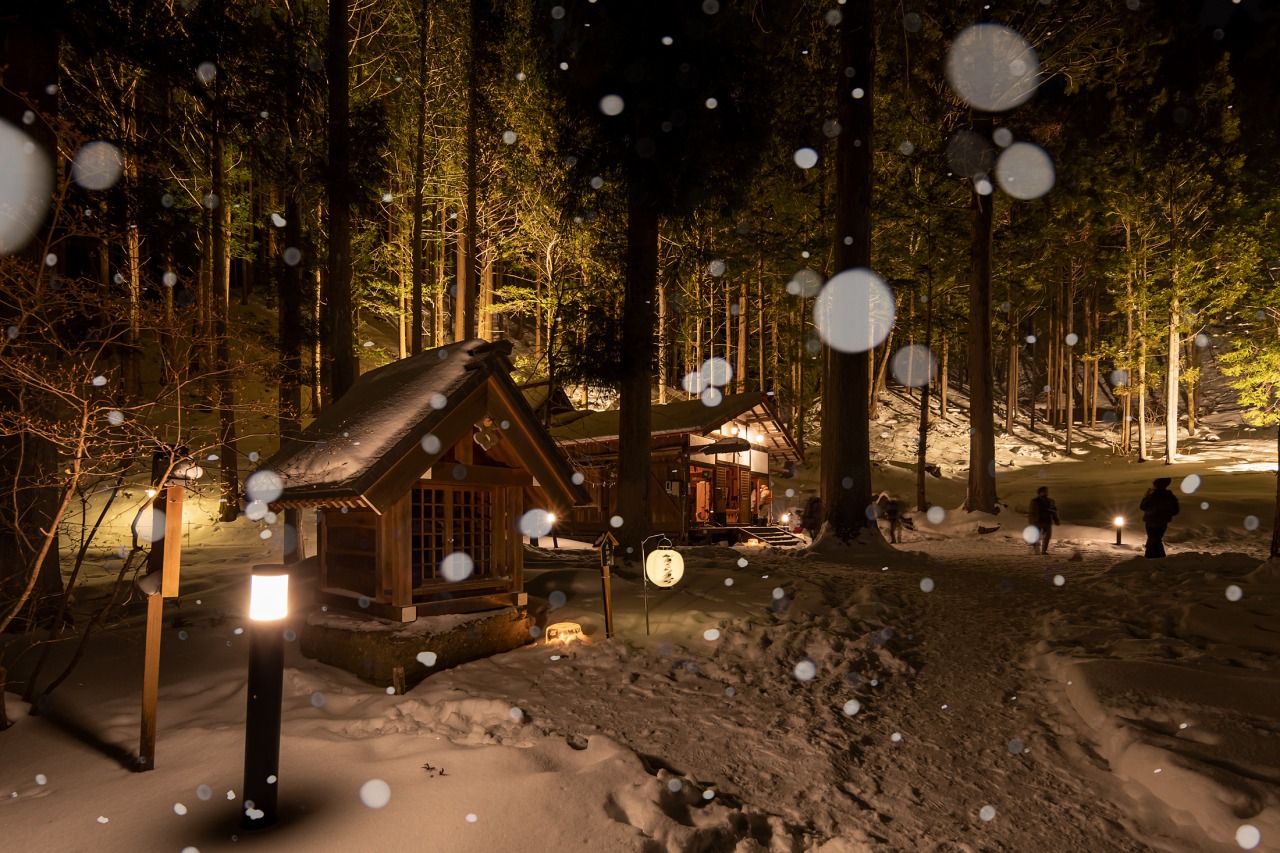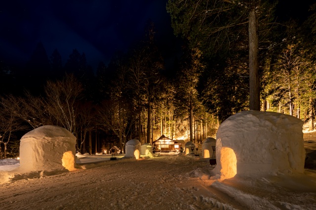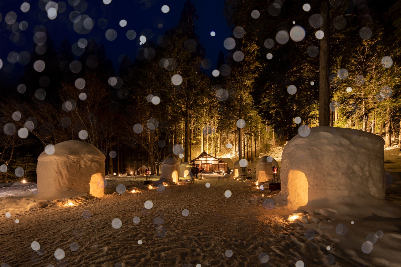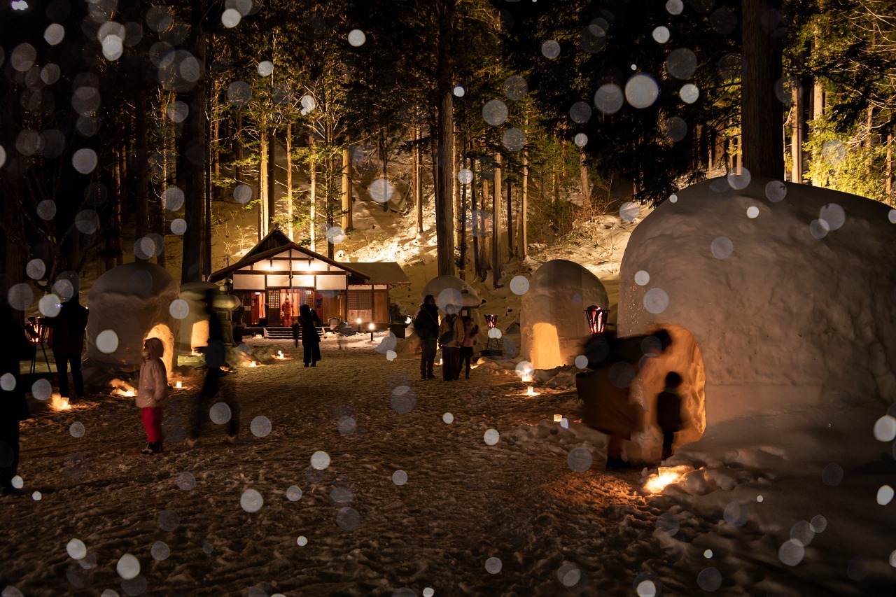 満天の星の下に、大小多彩な”かまくら”が登場します。雪深いこの地域では、家族で”かまくら”を作って冬の娯楽としていました。ほのかな灯りに浮かび上がる雪国情緒をお楽しみ下さい。